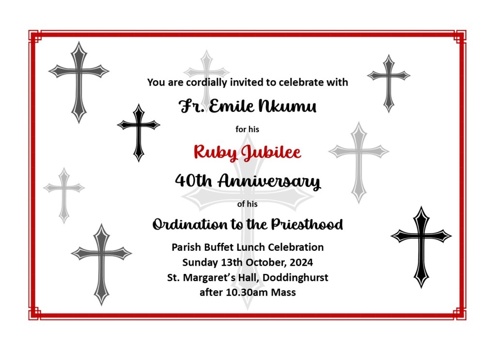 Please click here for our Parish Events Calendar for forthcoming events and save the dates to your diaries.